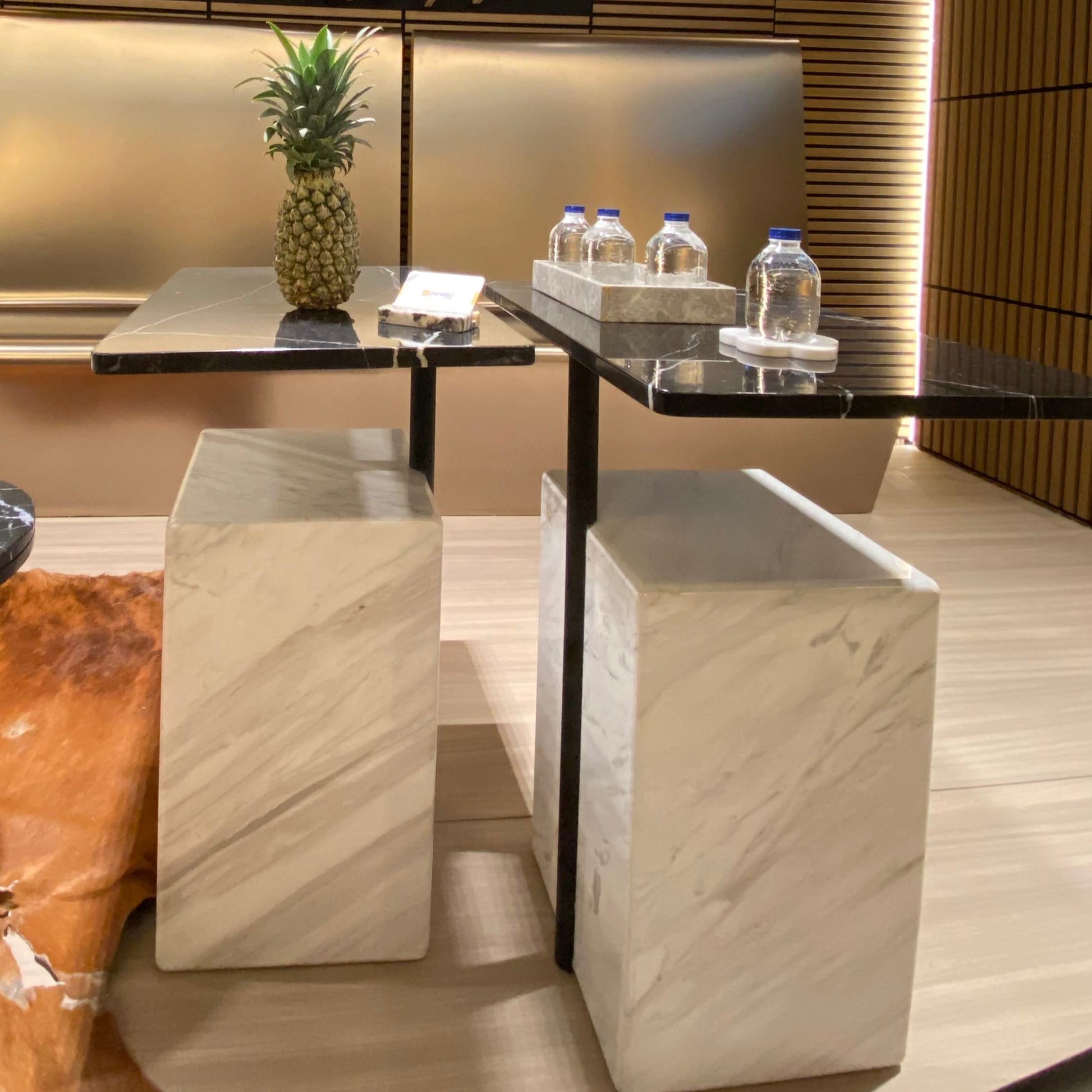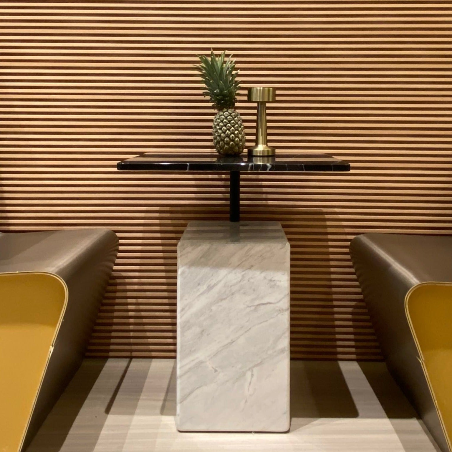 Unlike other side table designs, the Alora side table has two facing sides, allowing you to arrange seats on either side. This side table has blunt edges on all four sides, it has a dynamic shape and suitable to place at the living room where people gather around. Made from royal black material, adding the luxury and and elegant to any space. The bottom side of this table are made from white valencia which serve as a storage area for objects.