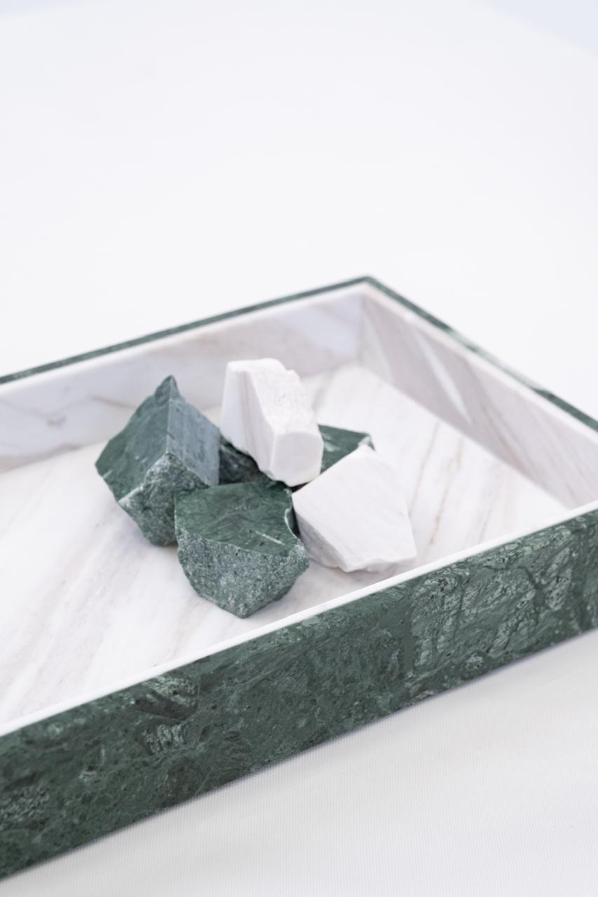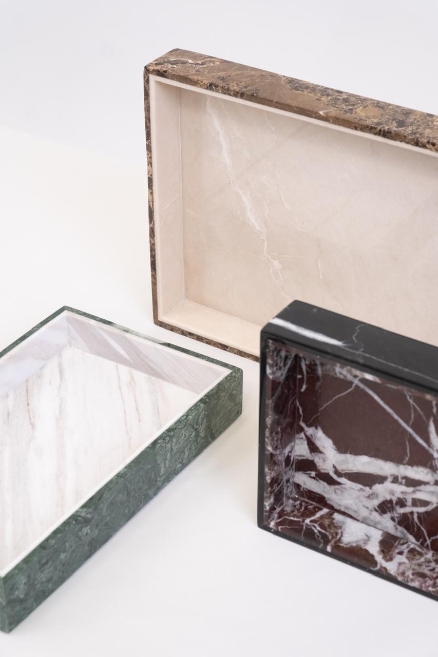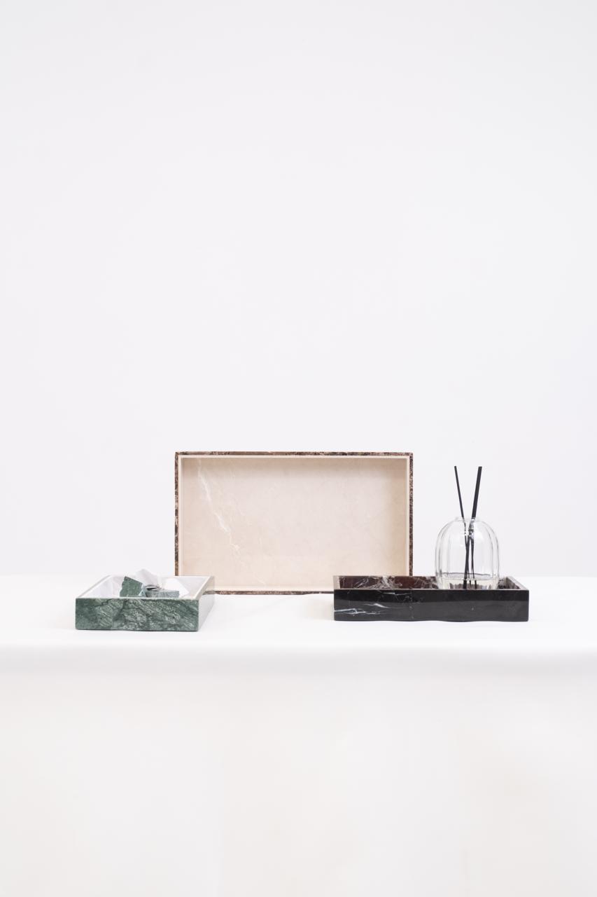 The Bacinella Tray returns in the Palette Collection with refined dual-tone marble. Its minimalist rectangular shape is perfect for organizing perfumes, candles, or stationery. Available in multiple sizes, it blends effortlessly into vanities, coffee tables, or entryways.