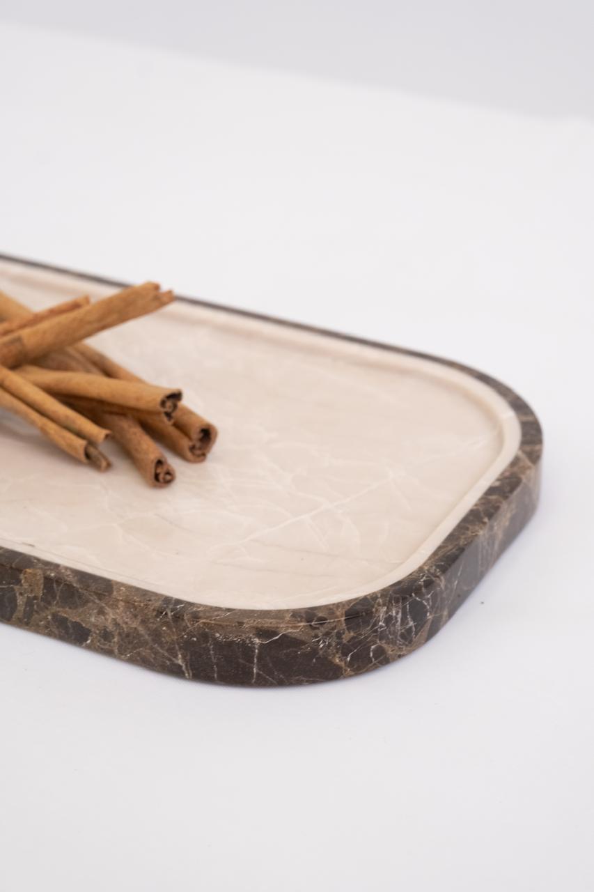The Boundless Capsule Tray transforms the classic oval shape into a dual-tone marble art piece. Perfect for holding jewelry, keys, or daily essentials, its raised rim keeps items secure, while the solid stone weight ensures it stays in place, a symbol of balance in diversity.