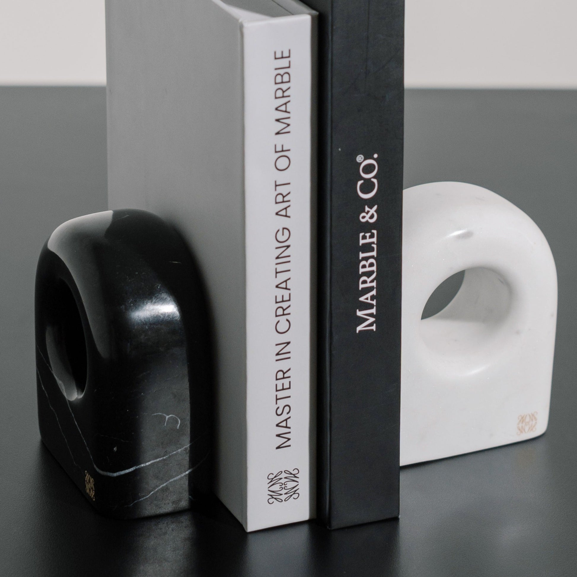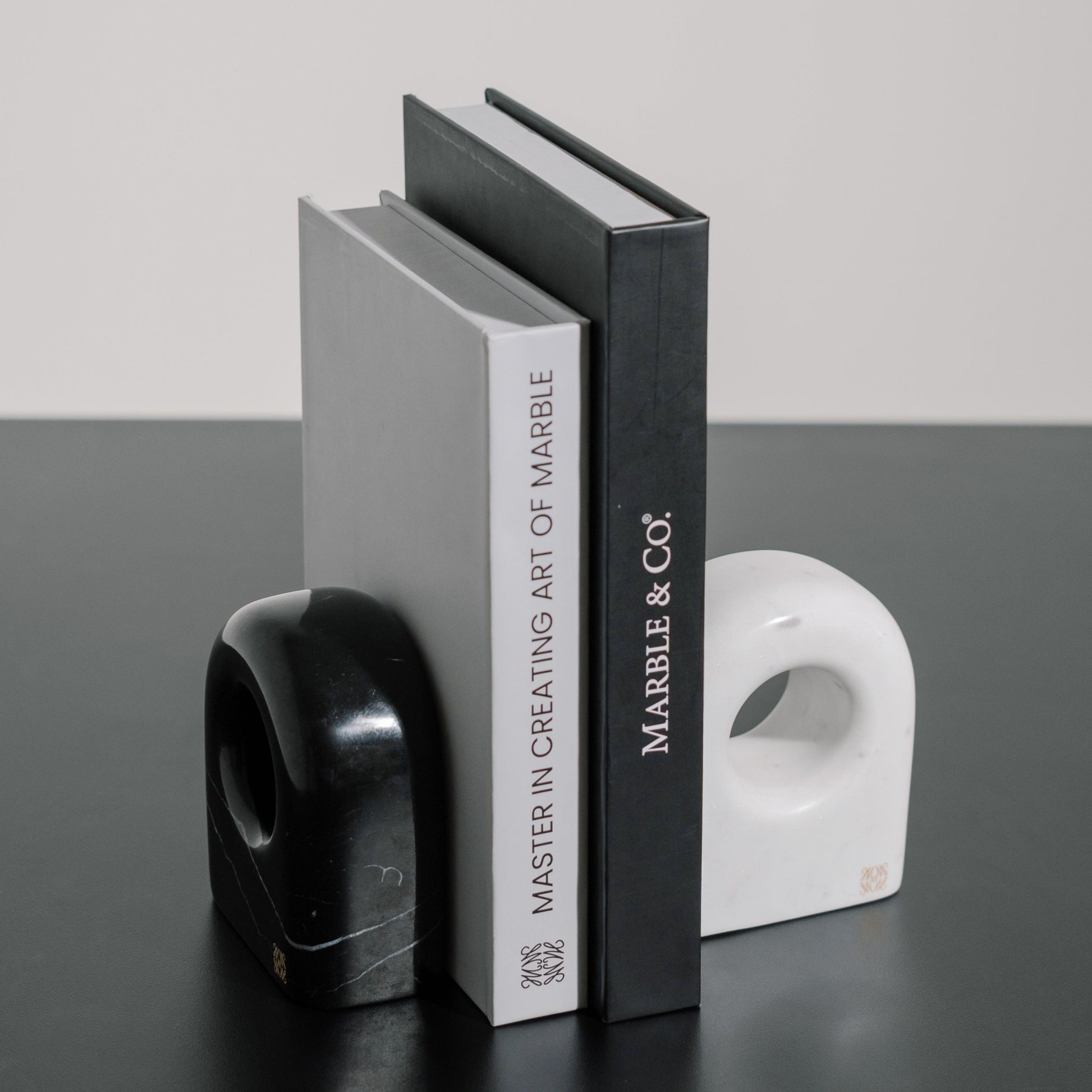 Dazzle your eyes with a bookends in a futuristic style and finest design. Not only serve to give more space, but also make a lovely addition to your bookshelf. It is semi-circular in shape and has a hole in the center, making it easy to limit the number of books. Come with two differect color in each side: Valencia and Nero Marquina. Both radiate a elegance marble tone in your opulent reading room.