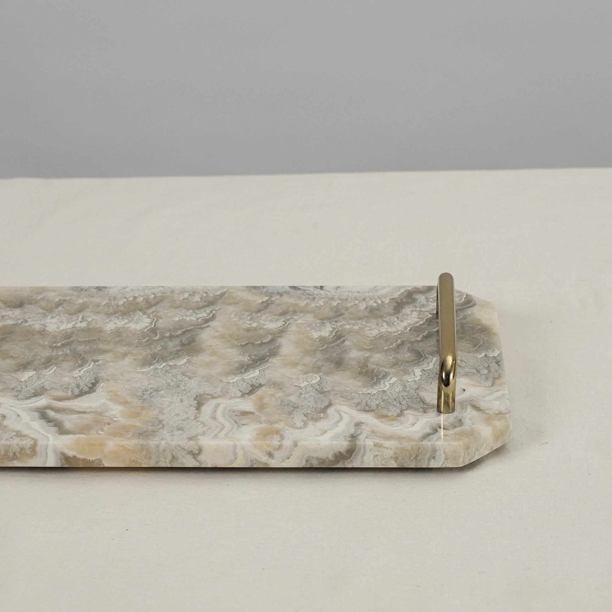 Octagonal Gold Handle Tray is a luxurious and elegant addition to your home decor. This exquisite handle is crafted with precision, featuring a distinctive octagonal shape and adorned with opulent gold accents. The base is made of high-quality onyx, showcasing its natural beauty with intricate veining and a polished finish.