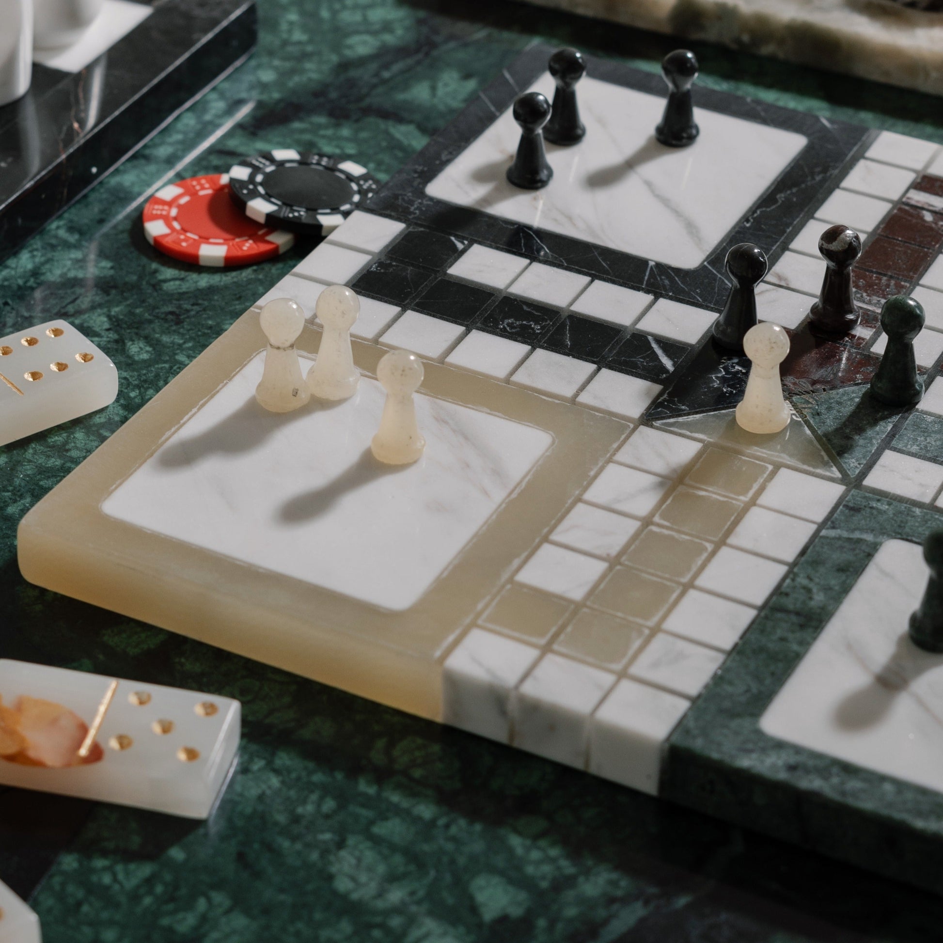 The first to leave does not always win. Nonetheless, the last to enter the house is the loser. Gather your friends and family for an evening of entertainment and indulgence as you engage in friendly competition with the Noble Marble Ludo Set. Upgrade your boardgame arena to a marble material, carrying you to a beautiful realm. Take your pawns home be a winner.