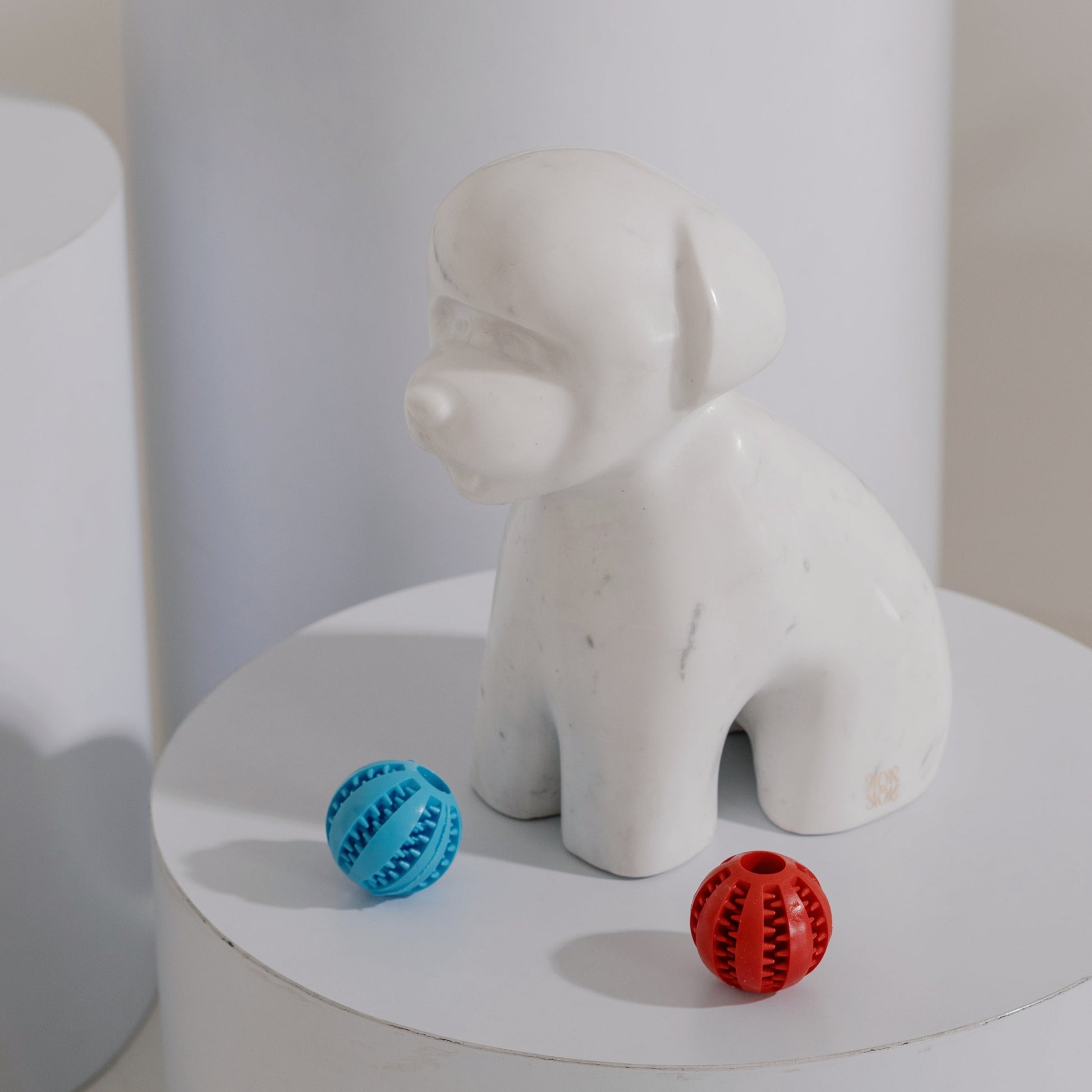 Snowball the Bichon sculpture dog crafted from the finest marble, shows outstanding artistry and attention to detail, from the Bichon's characteristic fluffy fur to its expressive eyes and joyful attitude.