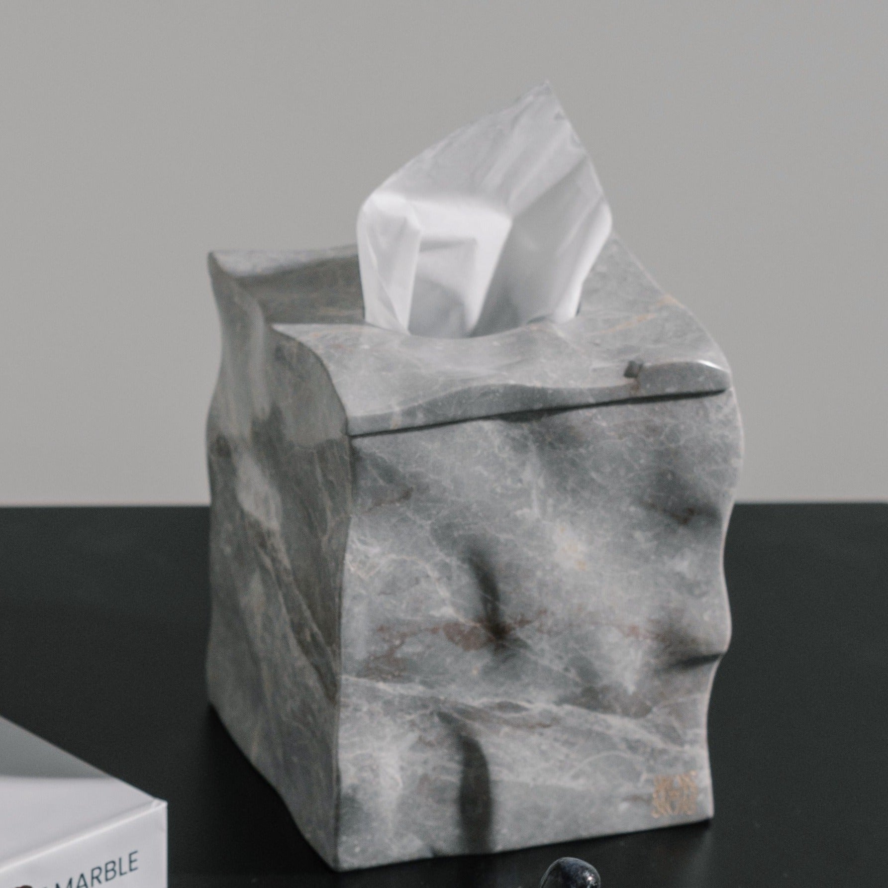 Designed to accommodate standard tissue sheets, this marble tissue sheet holder combines practicality with aesthetic appeal. Whether placed in your bathroom, living room, or office space, the Tissue Sheet Wave Marble elevates the mundane task of tissue retrieval into a visually pleasing experience.