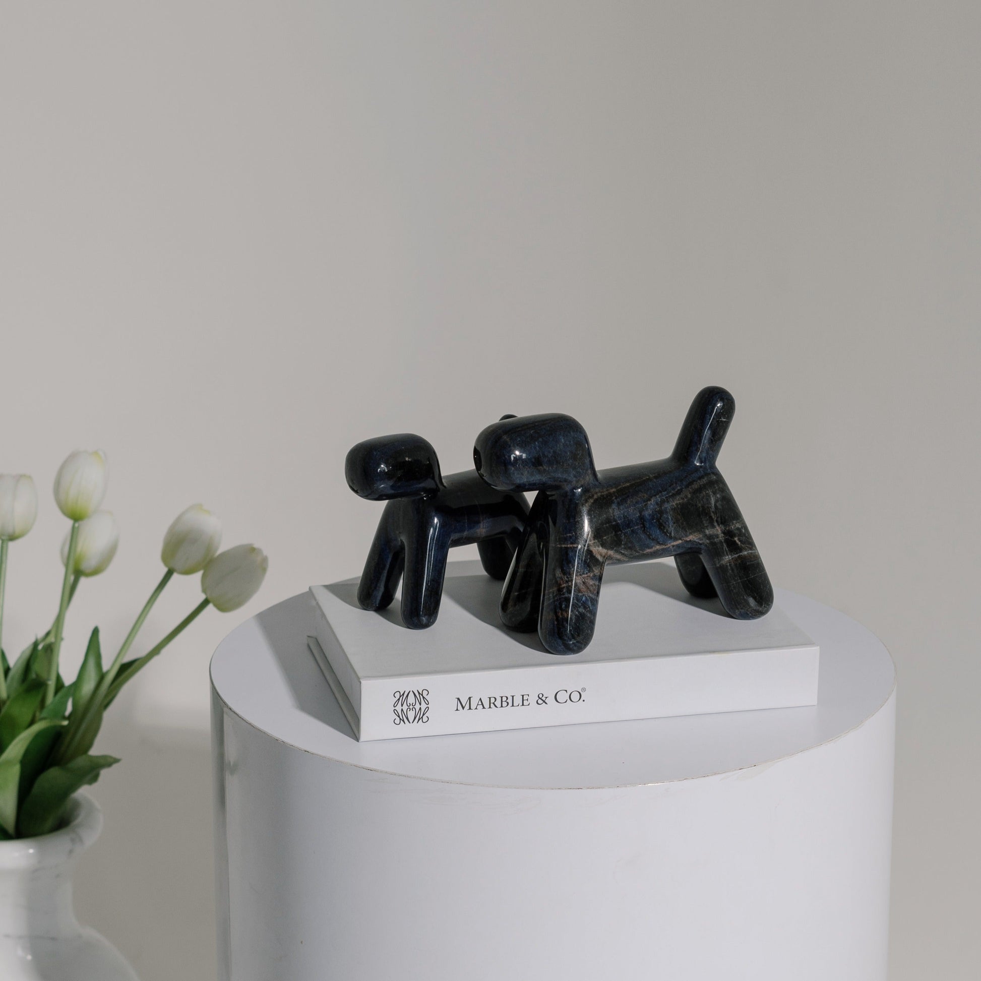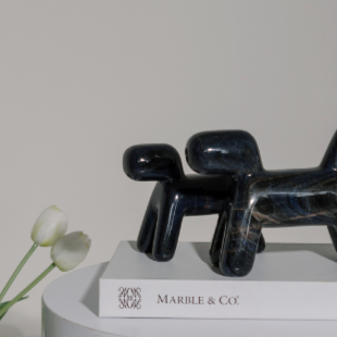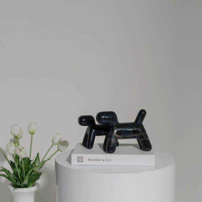 A Woofy Puffy petite dog sculpture is a charming and intricately crafted piece of art that captures the likeness and personality of a dog in a small, detailed form.